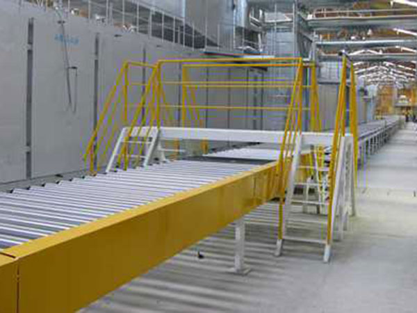 El grosor del revestimiento de cromo es de hasta 0,05 mm. Los extremos de los ejes están rectificados. El rebote máximo de los rodillos es de 0,4 mm. Esto garantiza que la cama de rodillos para placas de yeso ofrezca una gran eficiencia y continuidad. Incorpora dispositivos de protección que maximizan la seguridad y reducen el ruido.