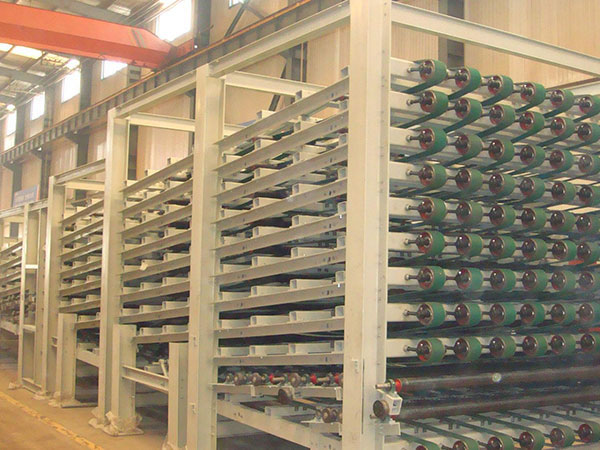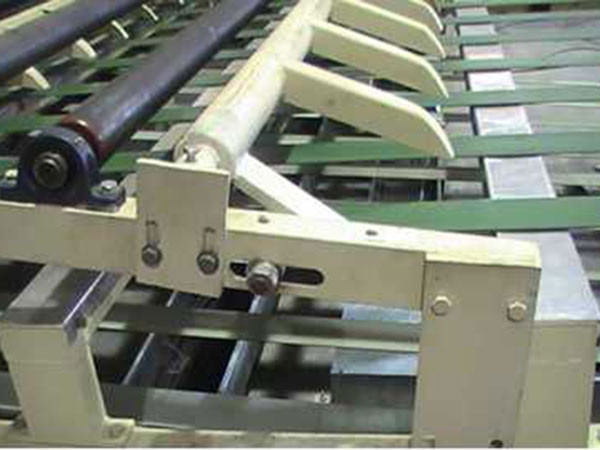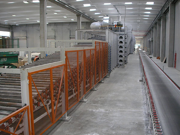 Tal y como su nombre indica, el sistema de descarga del secadero sirve para conectar el secador de placas de yeso al transportador transversal. Su función principal es descargar las placas de yeso secas.