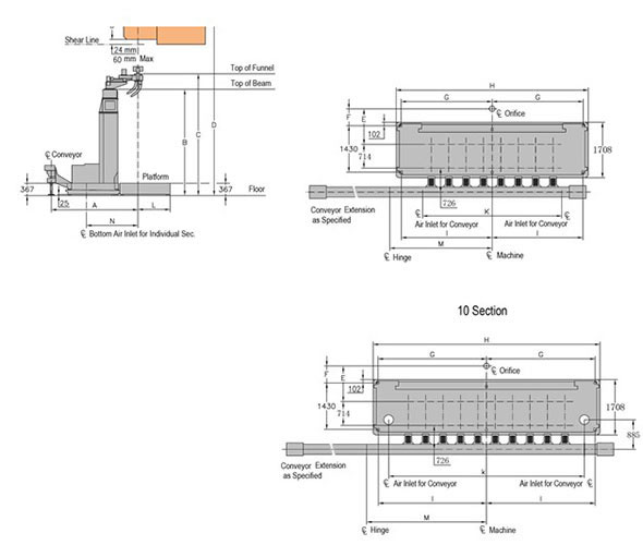 Tamaño de instalación de los equipos de producción de botellas de vidrio | Alimentador |