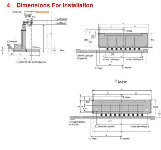 | Refrigeración vertical para molde y refrigeración horizontal para premolde | 1200 mm H2O | 60 |