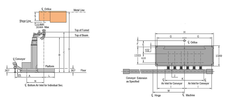 | Refrigeración vertical para molde y refrigeración horizontal para premolde | 1200 mm H2O | 50 |