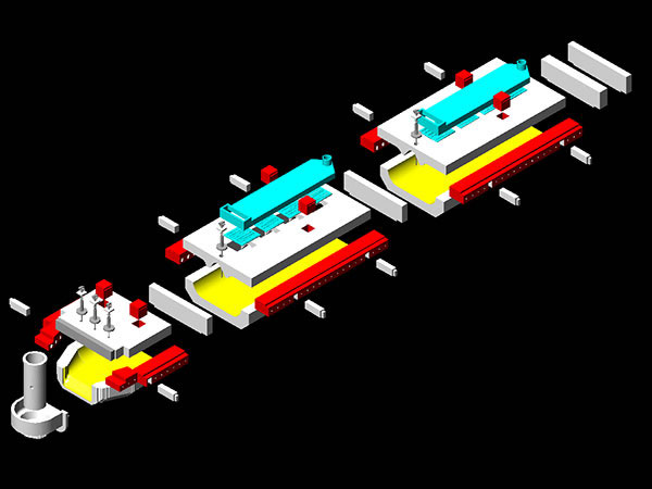 Este equipo para fabricar envases de cristal incorpora sopladores individuales de velocidad variable. El precio de compra relativamente elevado de este canal de distribución queda compensado con su bajo consumo energético.