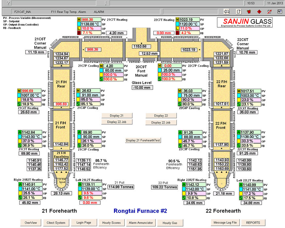 Sensores de control de temperatura: Termopares/pirómetros de fibra óptica según el tipo de vidrio o requisitos de los clientes.